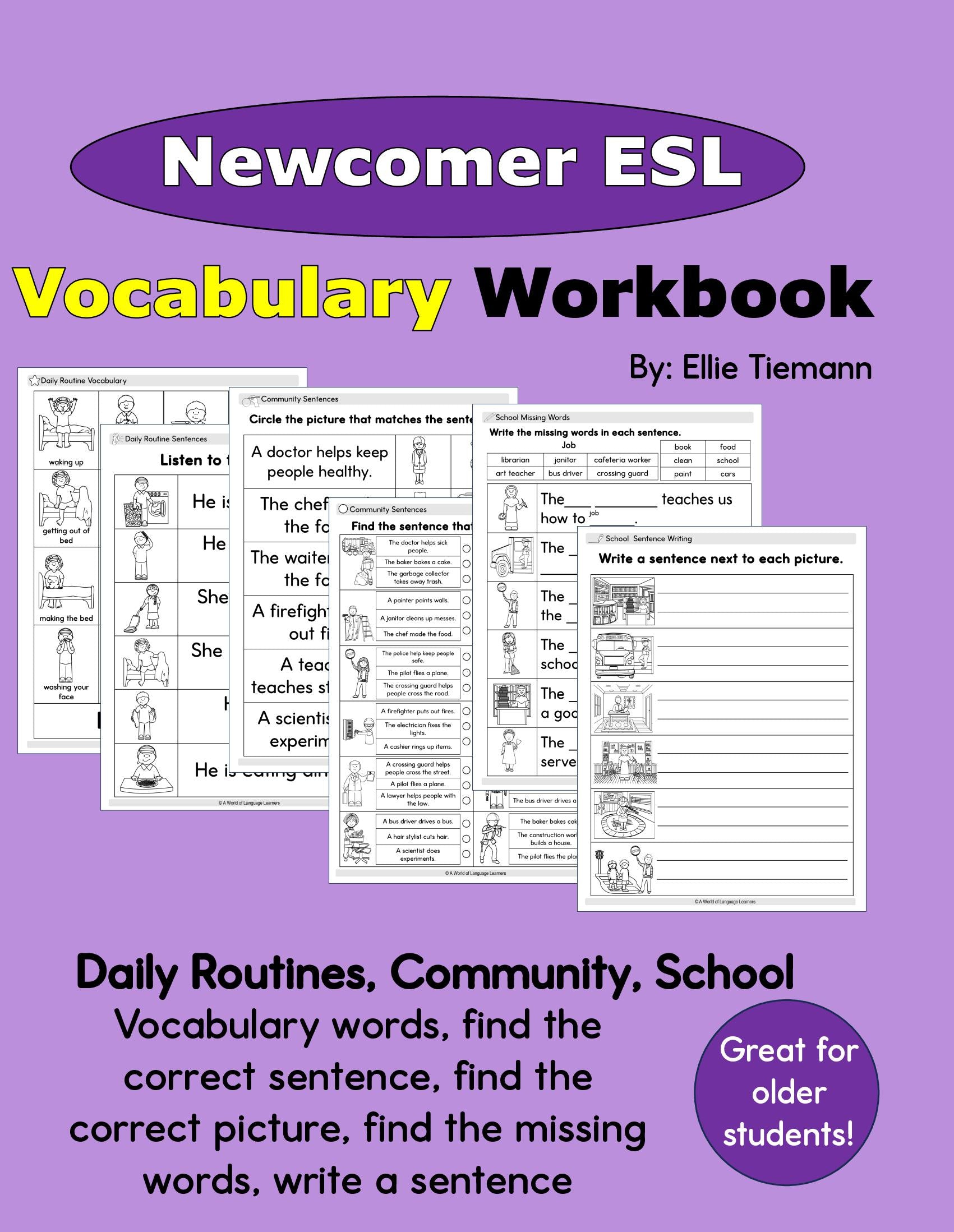 **A physical printed version of the ESL Vocabulary Workbook: Newcomer Students | Daily Activities, Community, School is available on Amazon.